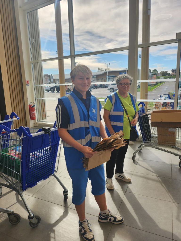 Pris en charge par les bénévoles aguerris, ils ont distribué les sacs de dons à l’entrée, récupéré les denrées et remercié tous les clients généreux qui ont fait preuve d’altruisme.