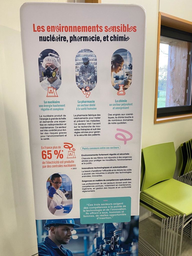 – 1h30 de visite des plateaux techniques de la chaudronnerie, de la maintenance industrielle, du BTS CIRA et capteurs, du travail en environnement sensible (nucléaire)