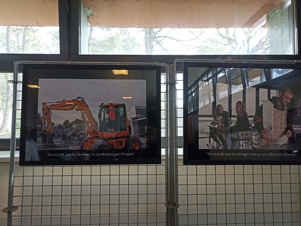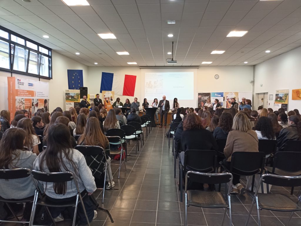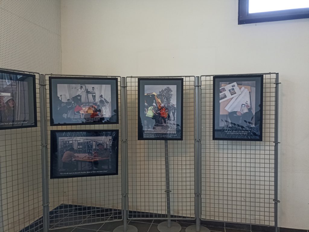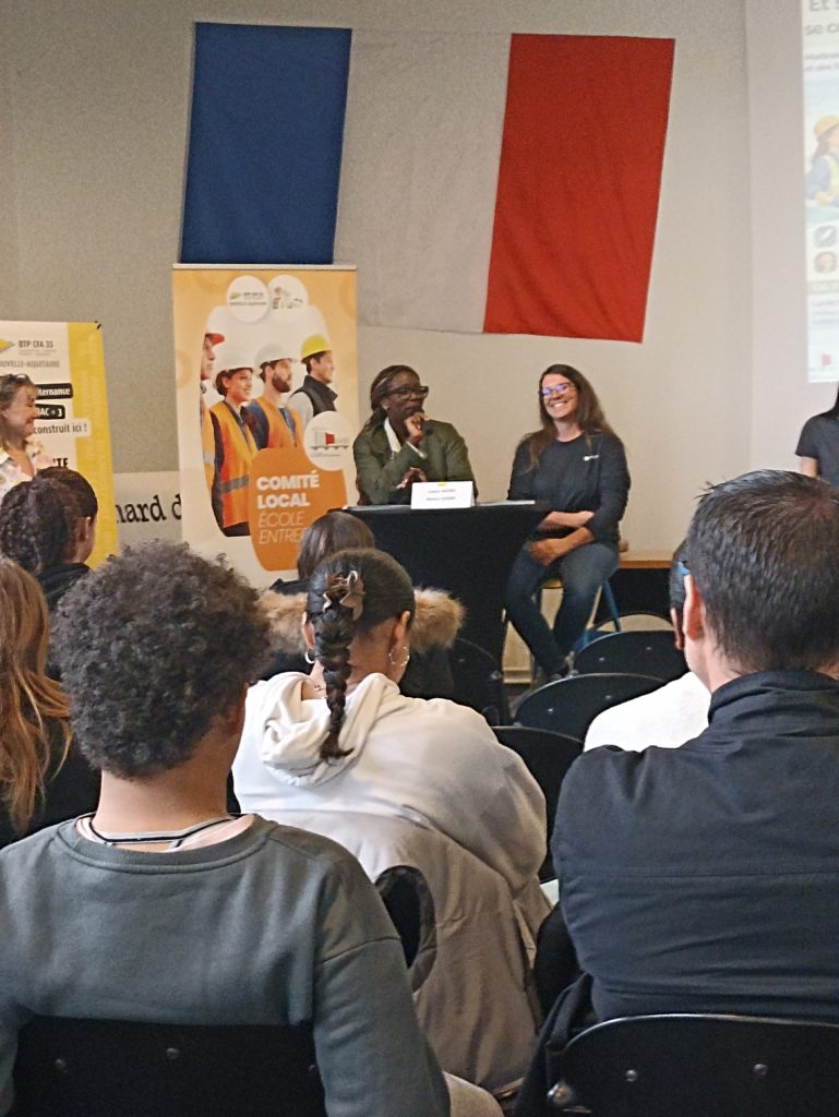 Après un temps d’accueil, nos élèves ont bénéficié d’une présentation des intervenants et des formations proposées par le lycée Léonard de Vinci et le CFA BTP de Blanquefort. Elles ont particulièrement apprécié les témoignages d’élèves ou apprenties qui racontaient comment et pourquoi elles avaient choisi cette filière ainsi que les difficultés qu’elles pouvaient rencontrer. Unanimement, elles sont fières de leur parcours et peuvent compter sur la bienveillance de leurs collègues masculins, elles recommandent vivement à nos collégiennes de s’intéresser à la diversité des métiers proposés par le Bâtiment et les Travaux Publics.
