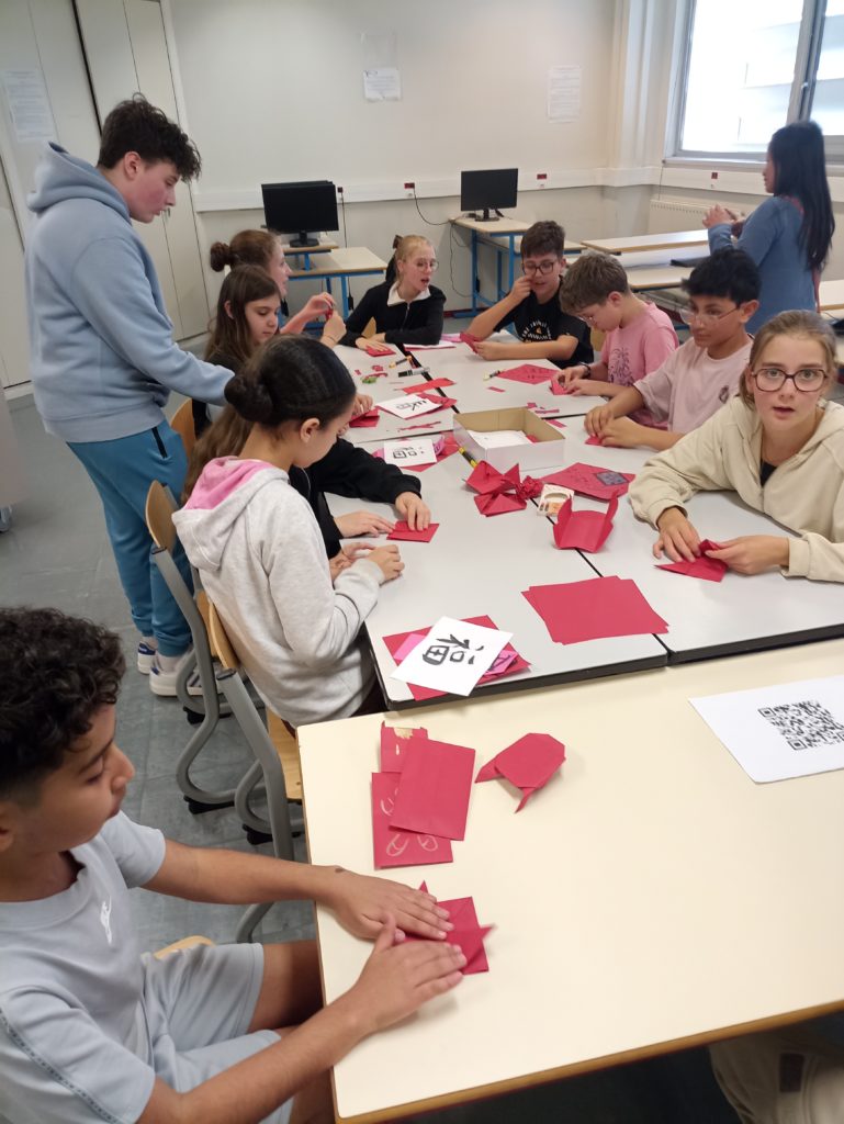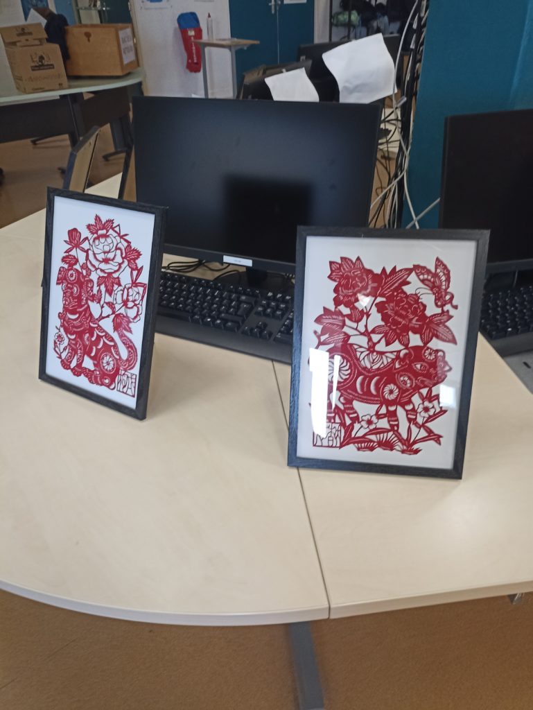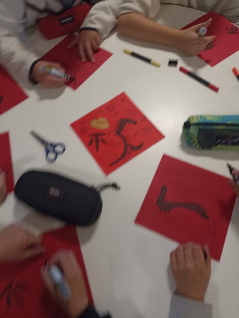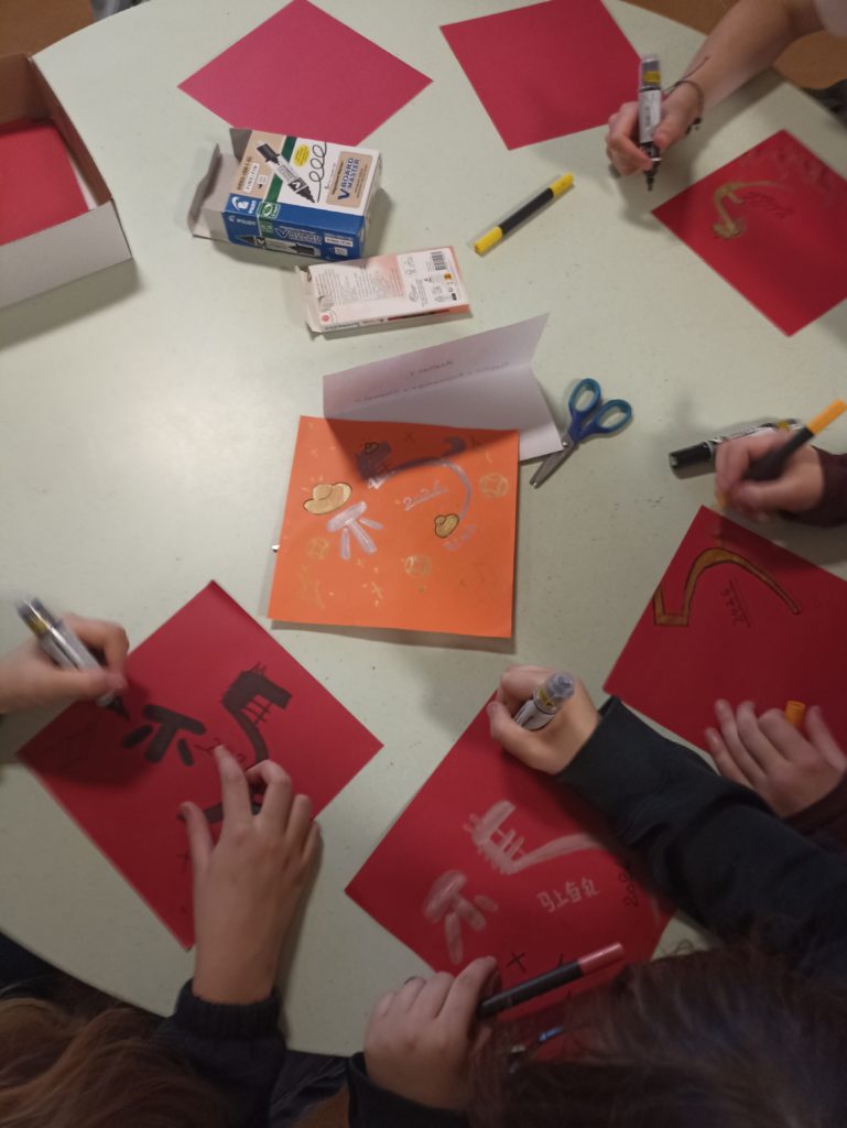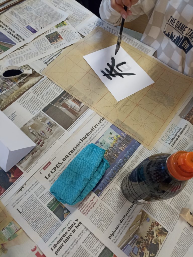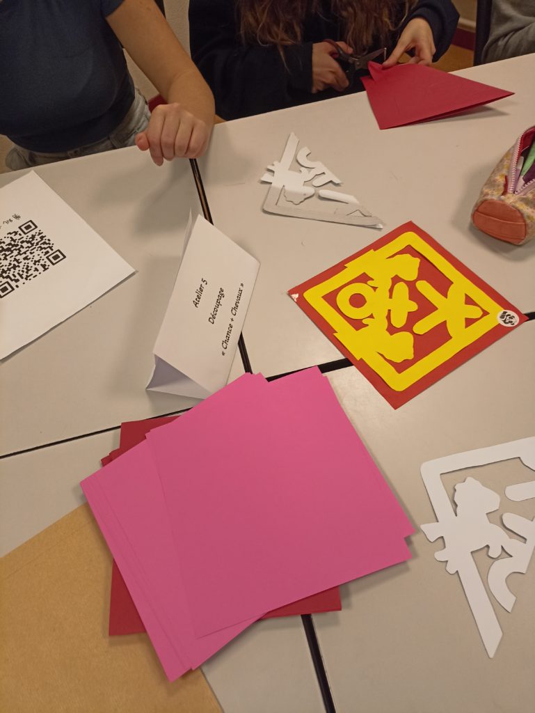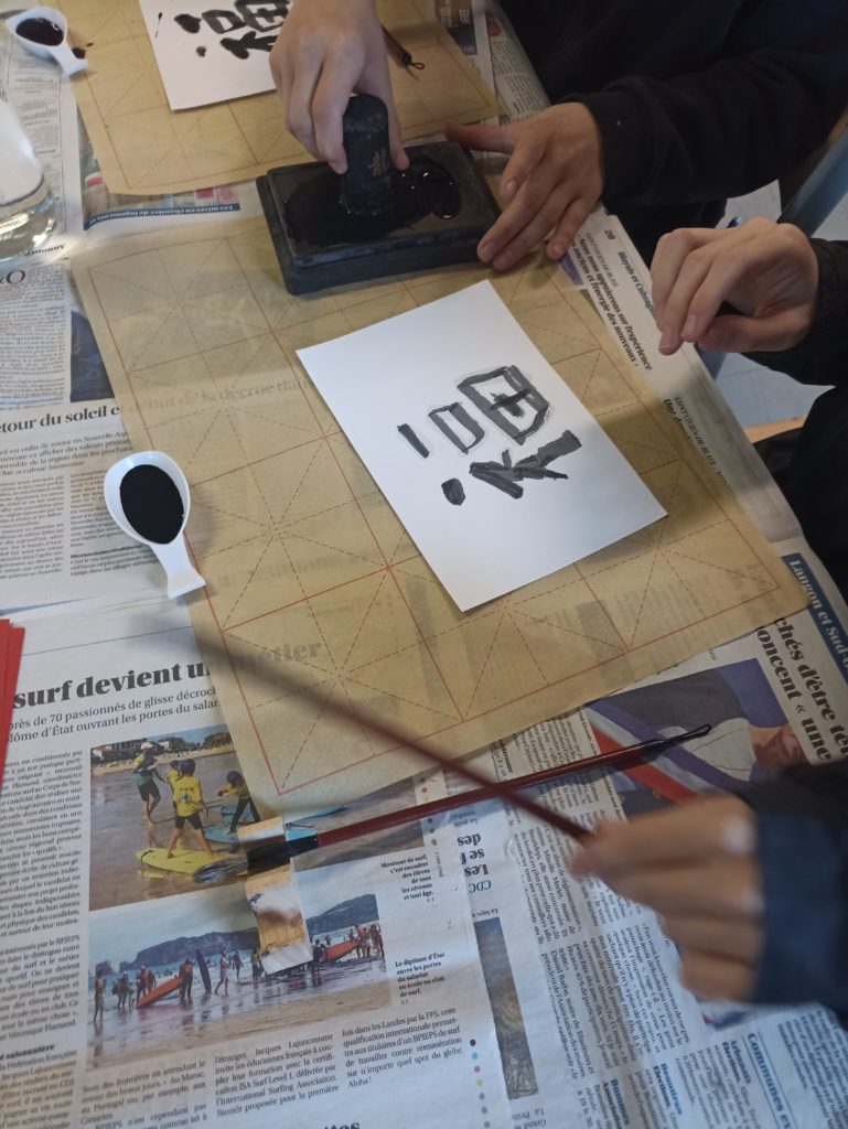 Au programme, fabrication d’enveloppe, calligraphie à l’encre de Chine, dessins, découpage et découverte de l’alphabet en écrivant son prénom. Les élèves, enchantés, ont passé un excellent moment. Merci au professeur Zhan Song pour l’organisation de cet évènement.