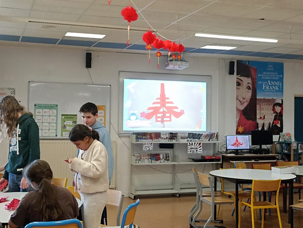 Lundi 23 mars, un après-midi au CDI, était consacré à la découverte de la LV2 Chinois pour les futurs 5e du collège. Des ateliers encadrés par les élèves de Seconde de Madame Zhan Song, et les 3èmes, avaient lieu tout l’après-midi pour recevoir les 6èmes.