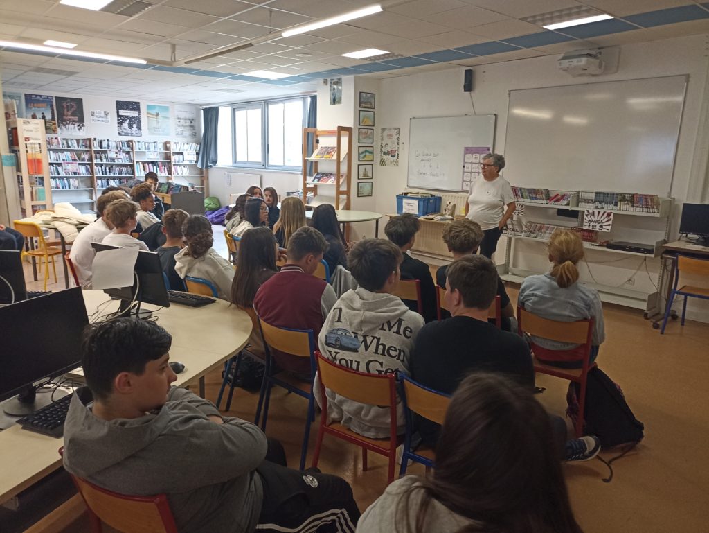 Lundi 22 septembre, la classe de défense débutait son premier projet au profit du Secours Populaire en accueillant Mme Moreaux, présidente de l’antenne de Blaye. Elle est venue expliquer son rôle au sein de l’association et les diverses actions menées.